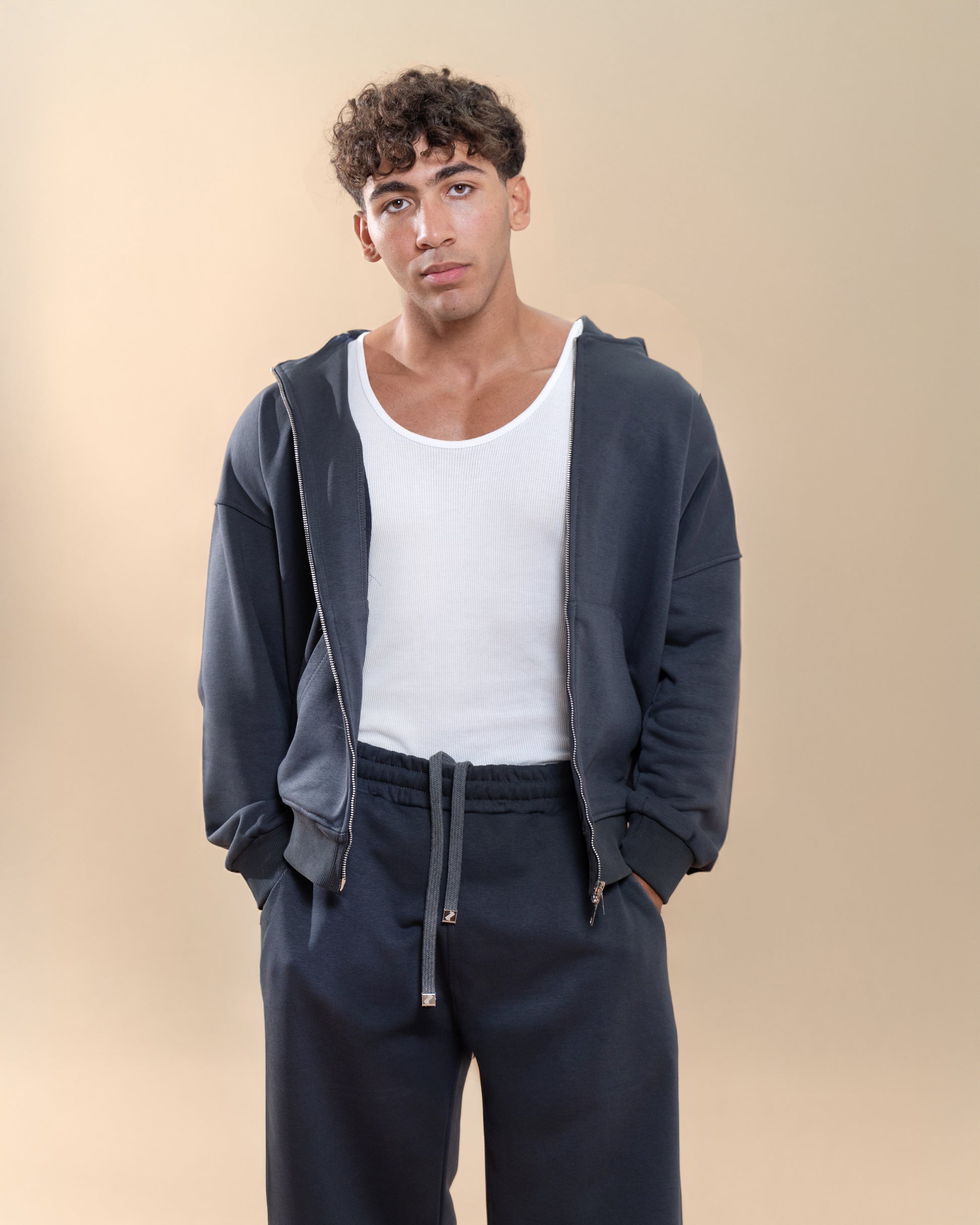 A seamless fusion of comfort, sophistication, and modern design. Made from a premium blend of Lycra, Cotton, and Summer Melton, this gray set offers the perfect balance of softness, flexibility, and structure. The breathable fabric ensures all-day comfort, while the subtle stretch provides a flattering, easy fit. With its clean lines and minimalist aesthetic, the Fumora Set delivers effortless style for any occasion — from relaxed days out to refined casual looks. Experience understated elegance and lasting comfort with the Fumora Set.